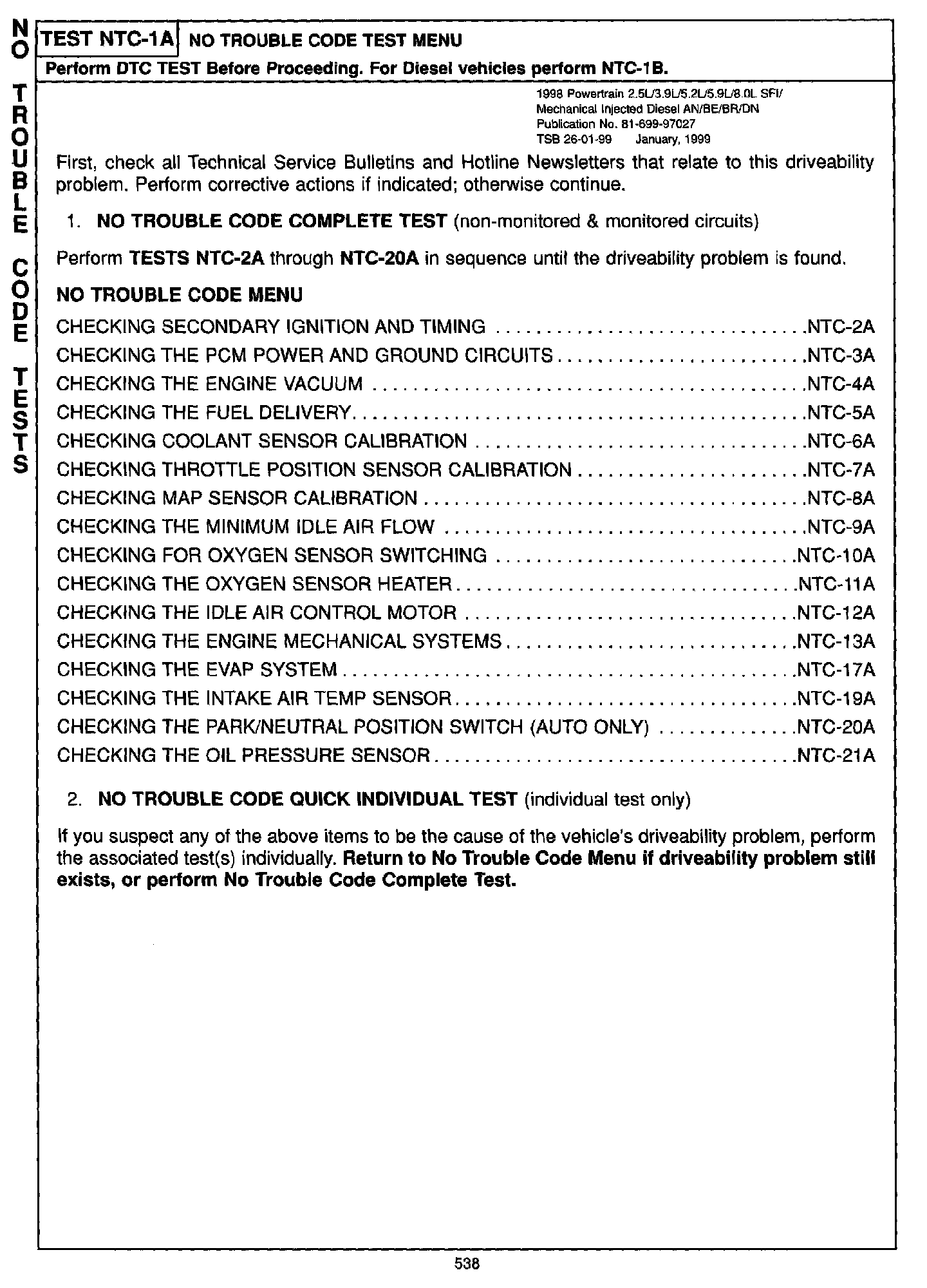 1998 Powertrain 2.5L. 3.9L, 5.2L, 5.9L, 8.0 SFI, Mechanical Injected Diesel Diagnostic Manual - Publication Number 81-699-97027