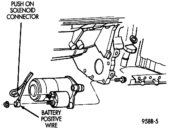 6. Remove three bolts attaching starter to transmission housing and remove starter from vehicle.