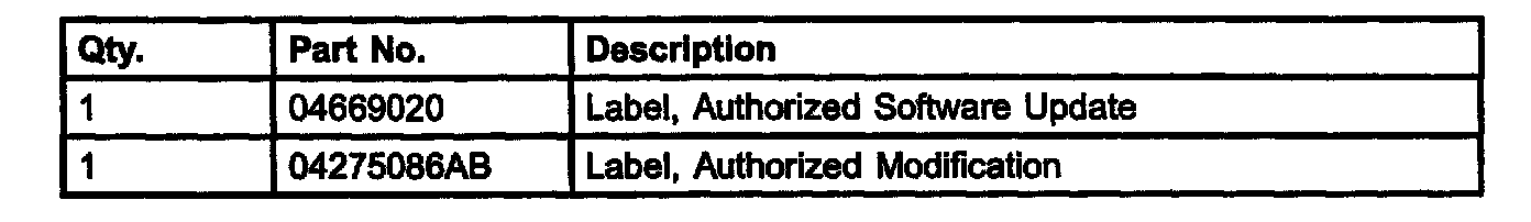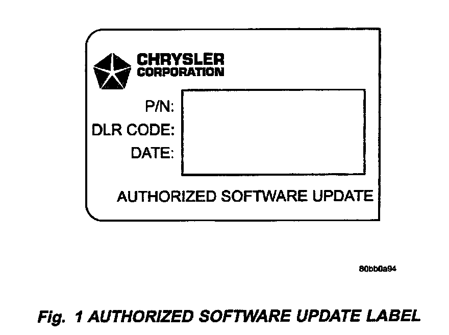 3. Type the necessary information on the "Authorized Software Update Label" p/n 04669020 (Fig. 1). Attach the label to the PCM as necessary and cover the label(s) with the clear plastic overlay.