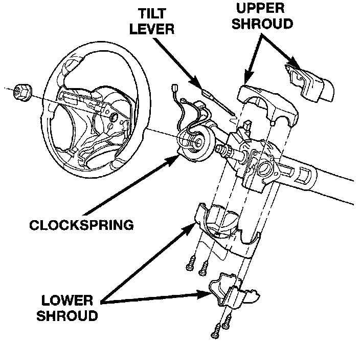 4. Remove both the upper and lower shrouds from the steering column.