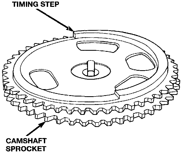 The camshaft position sensor detects when a step in the camshaft sprocket passes beneath it. When the sensor detects the step, the input voltage from the sensor to the PCM switches from low (0.3 Volts) to high (5 Volts). As the step returns away from the sensor, the input voltage switches back to low (0.3 Volts).