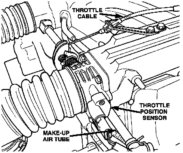 The TPS mounts to the side of the driver side throttle body. The TPS connects to the throttle blade shaft. The TPS is a variable resistor that provides the Powertrain Control Module (PCM) with an input signal (voltage). The signal represents throttle blade position. As the position of the throttle blade changes, the resistance of the TPS changes.