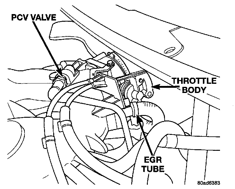 The EGR tube attaches to the intake manifold plenum on both sides of the throttle body and the EGR valve.