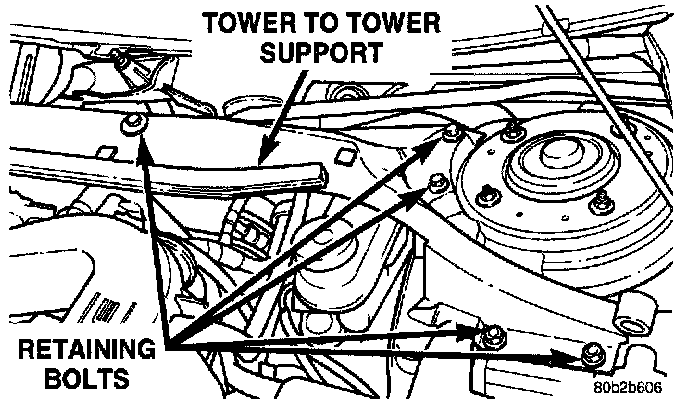 5. Remove eight bolts to Tower to Tower (cross-car) support.