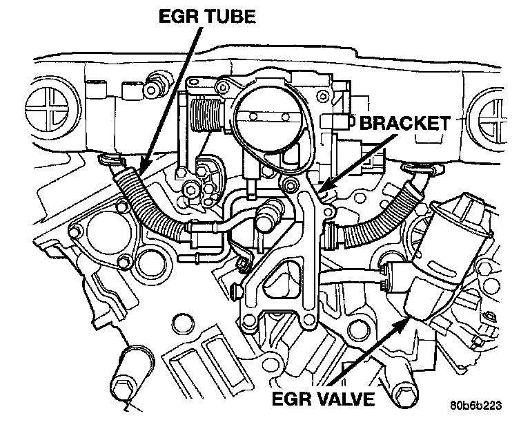 The EGR tube attaches to the bottom of the intake manifold plenum beside the throttle body.