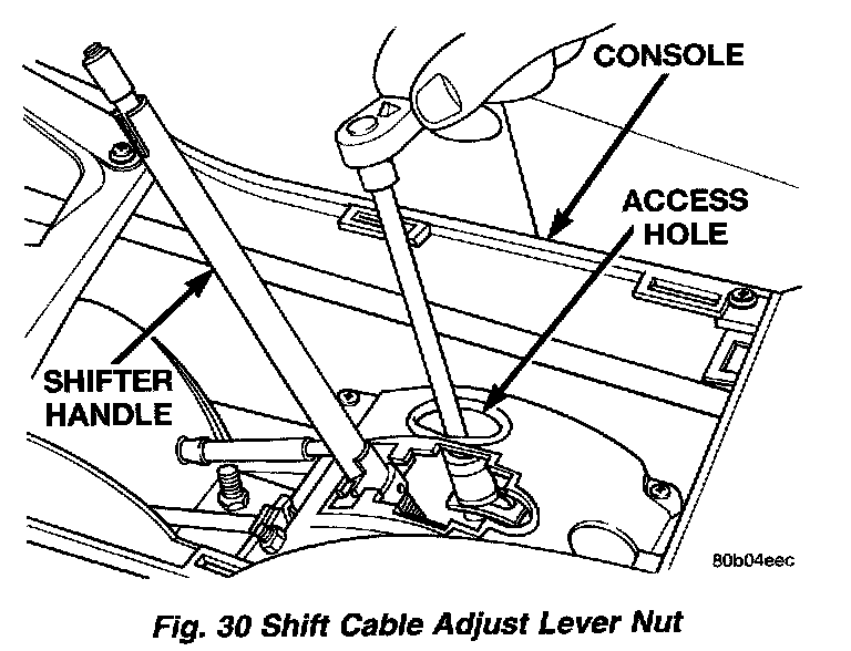 12. With shifter in gated park, tighten the adjuster nut (Fig. 30).