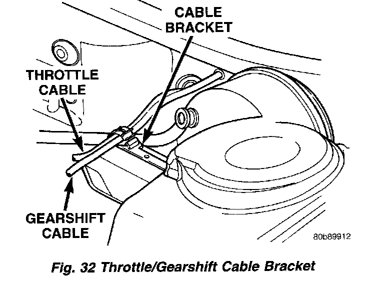 8. Install cable into throttle/gearshift cable bracket (Fig. 32).