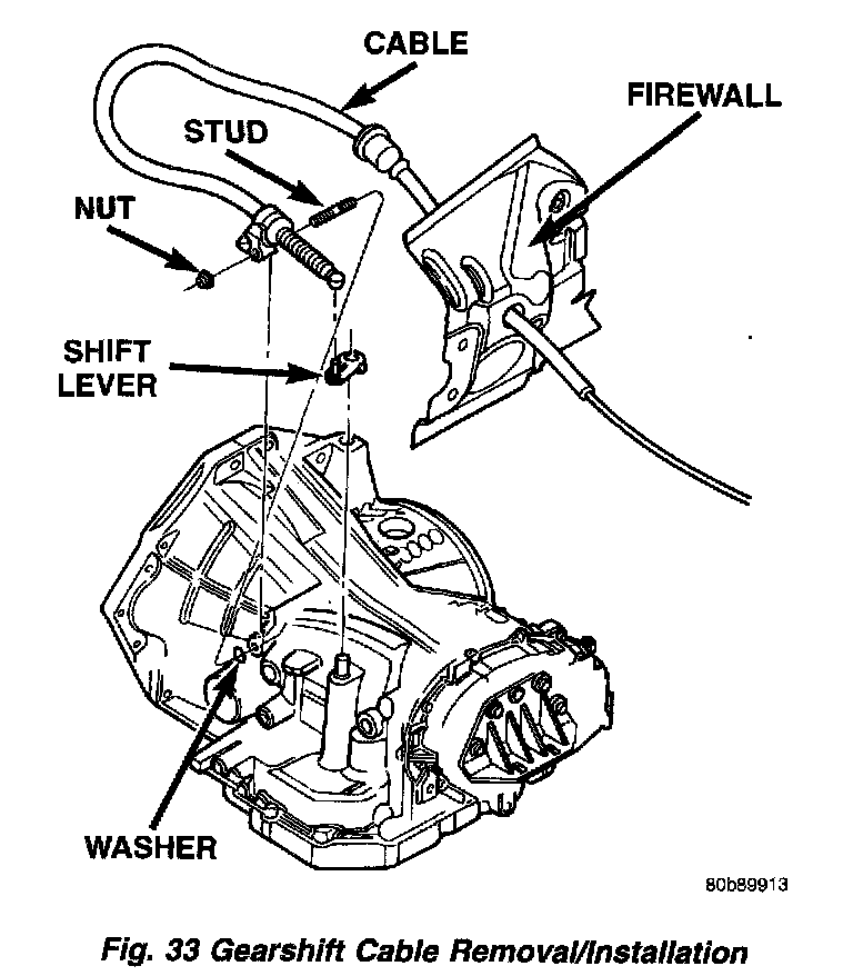 13. Disconnect shifter cable from shift lever assembly at transaxle (Fig. 33).