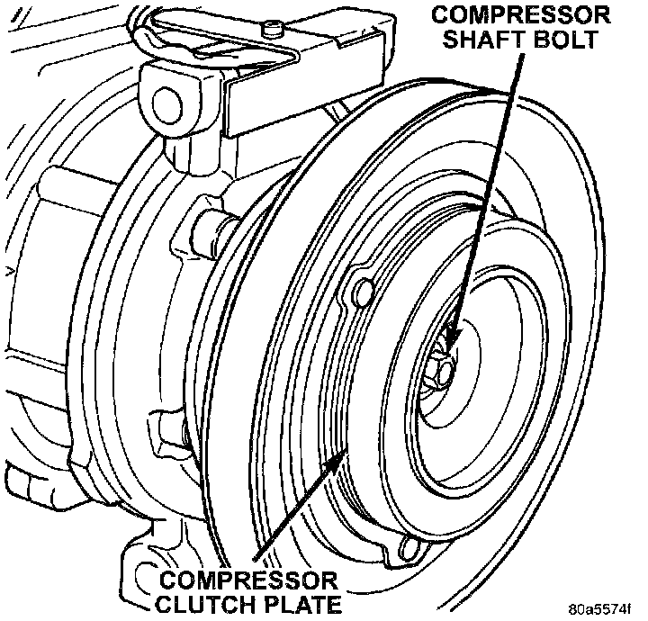 1.Remove the compressor shaft bolt. A band type oil filter removal tool can be placed around the clutch plate to aid in bolt removal.