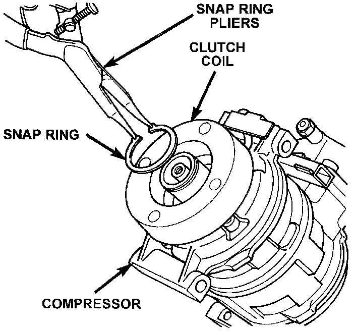 5. Remove snap ring retaining field coil onto compressor housing. Slide field coil off of compressor housing.