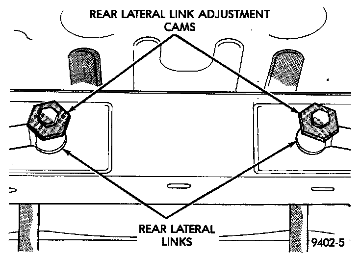 2. Rotate lateral link adjustment cams until the preferred rear toe specification is obtained.