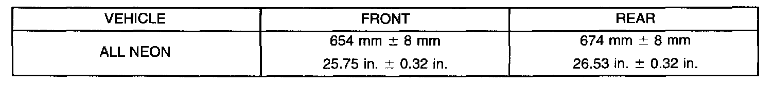 Vehicle height is to be checked with the vehicle on a flat, level surface, preferably a vehicle alignment rack. The tires are to be inflated to the recommended pressure. All tires are to be the same size as standard equipment. Vehicle height is checked with the fuel tank full of fuel, and no passenger or luggage compartment load.