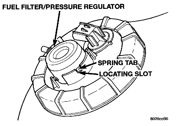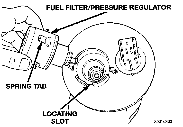 The fuel filter/fuel pressure regulator is located on the top of fuel pump module. Fuel pump module removal is not necessary