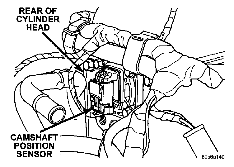 The camshaft position sensor attaches to the rear of the cylinder head. The PCM determines fuel injection synchronization and cylinder identification from inputs provided by the camshaft position sensor and crankshaft position sensor. From the two inputs, the PCM determines crankshaft position.