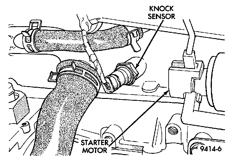 The knock sensor threads into the side of the cylinder block in front of the starter.