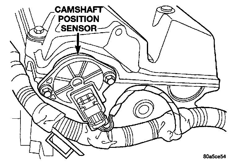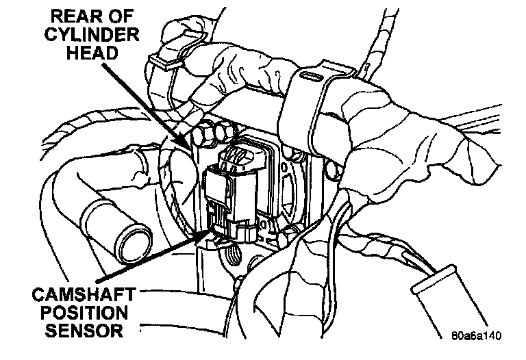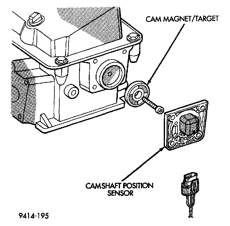 The camshaft position sensor attaches to the rear of the cylinder head. A target magnet attaches to the rear of the camshaft and indexes to the correct position. The sensor also acts as a thrust plate to control camshaft endplay on SOHC engines.