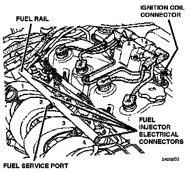 Fuel Rail, Ignition Coil Connector, Fuel Injector Electrical Connectors, Fuel Service Port: