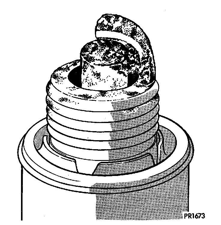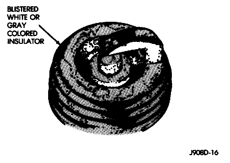 A spark plug that is coated with excessive wet fuel is called fuel fouled. This condition is normally observed during hard start periods. Clean fuel fouled spark plugs with compressed air and reinstall them in the engine.