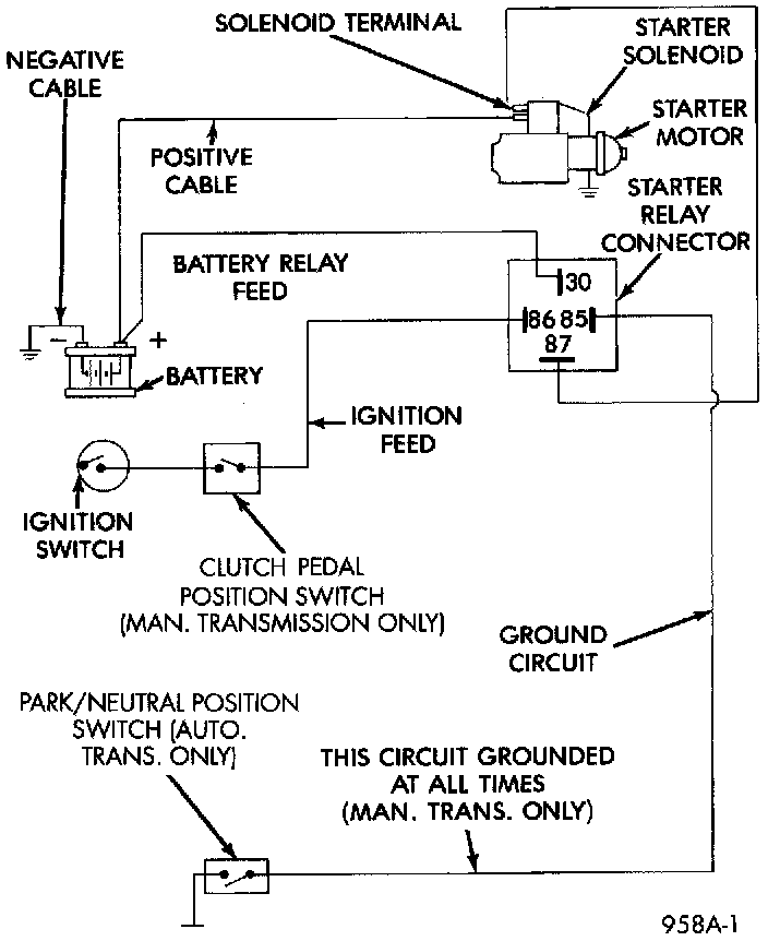 - A low amperage circuit to control the starter solenoid.