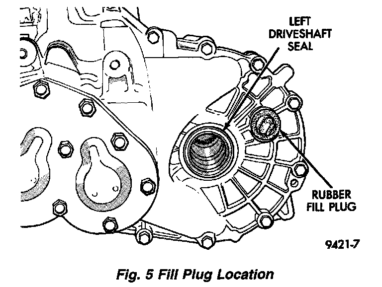 All NV T350 (A-578) transaxles are equipped with a fill plug. The fill plug is located on the left side of the transaxle differential area. The fluid level should be within 3/16 inch from the bottom of the transaxle fill hole (vehicle must be level when checking).