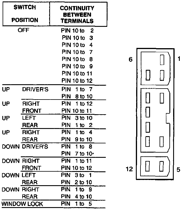 Passenger Window Switch Continuity Test: