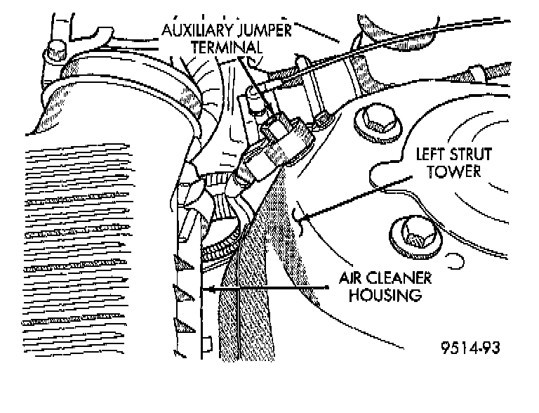 2. Disconnect negative cable from auxiliary jumper terminal.
