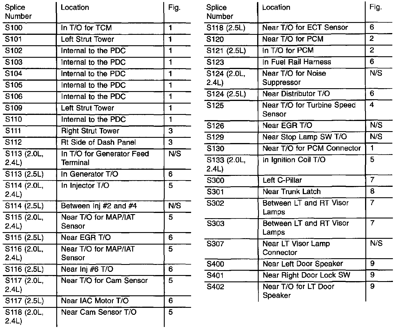 Splice Locations S100 To S402: