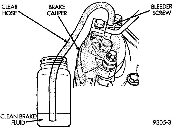 3. After approximately 4-8 ounces of fluid have been bled through the brake circuit and an air-free flow is maintained in the clear plastic hose and jar, close the bleeder screw.