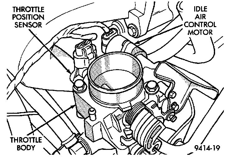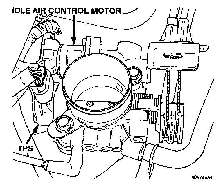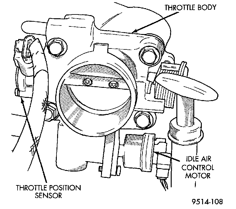 The throttle body mounts to the intake manifold. The throttle position sensor and idle air control motor attach to the throttle body.