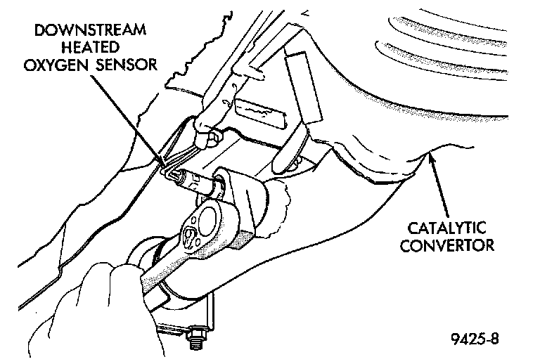 The downstream heated oxygen sensor threads into the exhaust pipe behind the catalytic convertor.