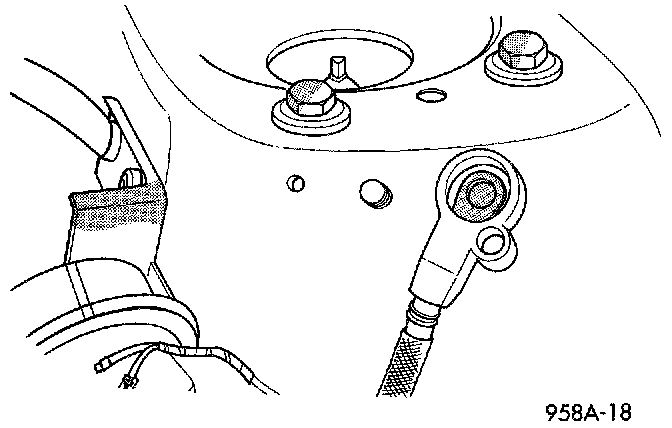 1. Disconnect battery negative cable from remote negative terminal on shock tower.