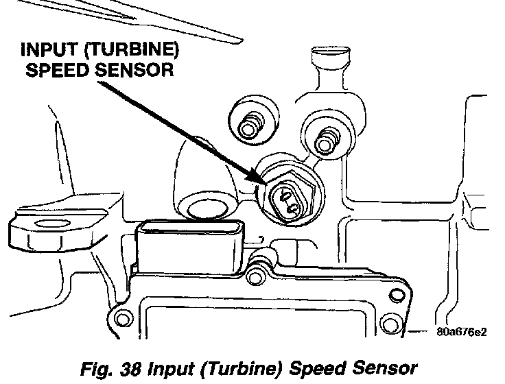 The input speed sensor is located to the left of the manual shift lever (Fig. 38).