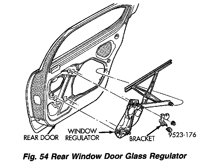 REAR DOOR WINDOW REGULATORPower and manual door glass regulators are serviced using the same procedures. For power window motor service procedures refer to Power Windows.