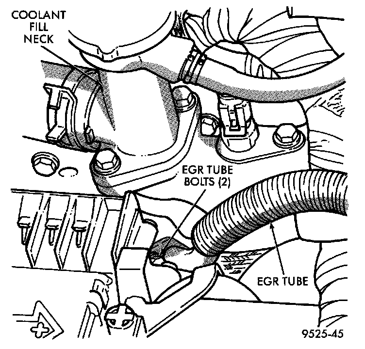 1. Remove screws attaching EGR tube to intake manifold.