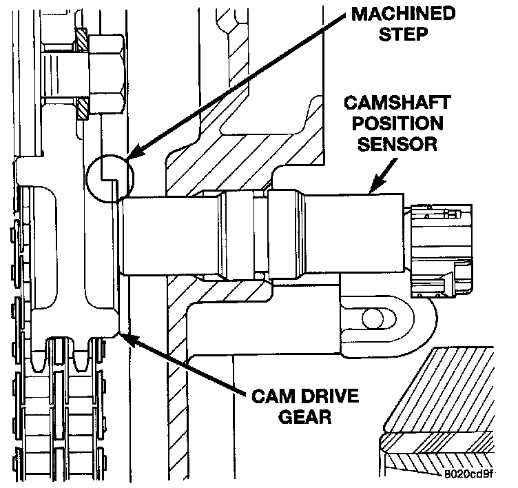 Before the sensor is installed, the cam gear may have to be rotated. This is to allow the high machined area on the gear to be directly in front of the sensor mounting hole opening on the timing gear cover.