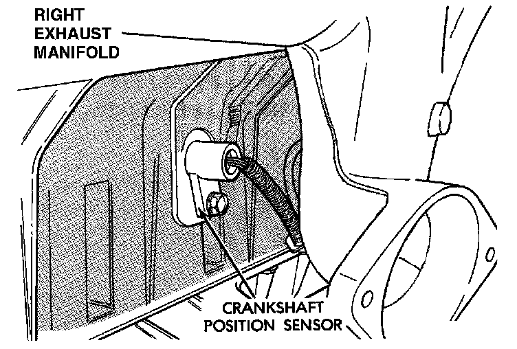 A heat shield covers the crankshaft position sensor. The sensor is located in the middle of the right side of the cylinder block, just above the oil pan.