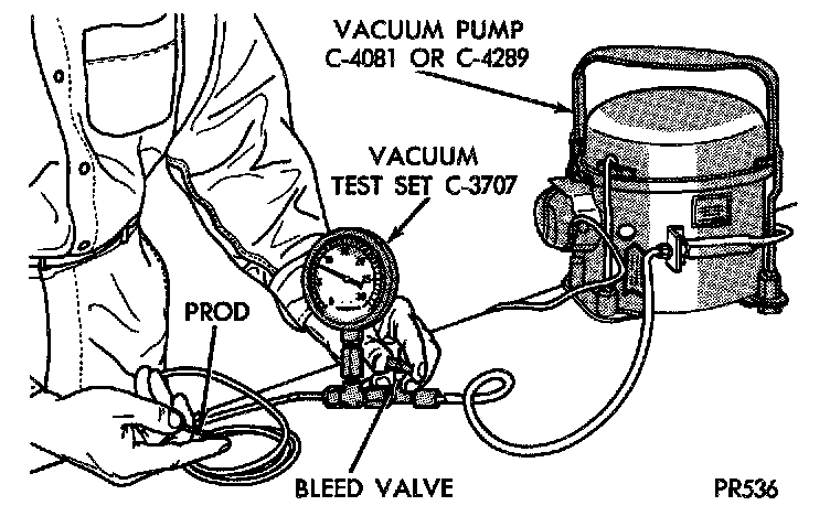 3. Connect test vacuum supply hose to the control module side of the valve. In this direction the gauge should return to calibrated setting. If valve leaks vacuum in this direction, valve replacement is necessary.