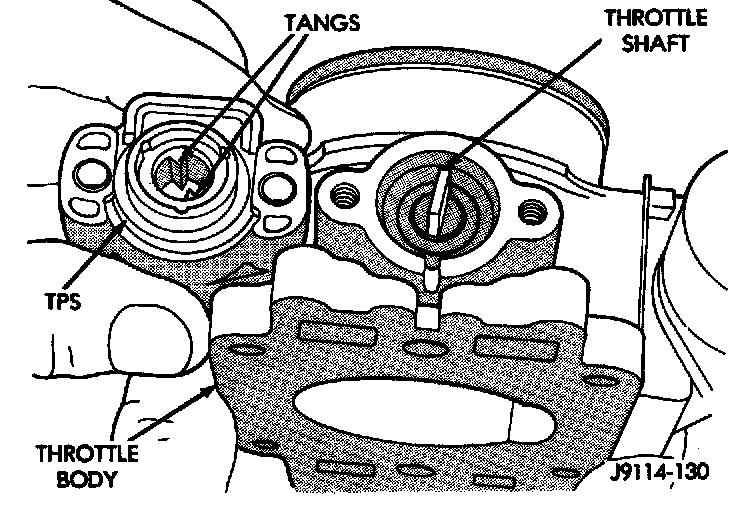 The throttle shaft end of the throttle body slides into a socket in the TPS. When indexed correctly, the TPS can rotate a few degrees to line up the mounting screw holes with the screw holes in the throttle body. If the sensor will not rotate into place, install the sensor with the throttle shaft on the other side of the socket tangs. The TPS has slight tension when rotated to align the mounting holes.