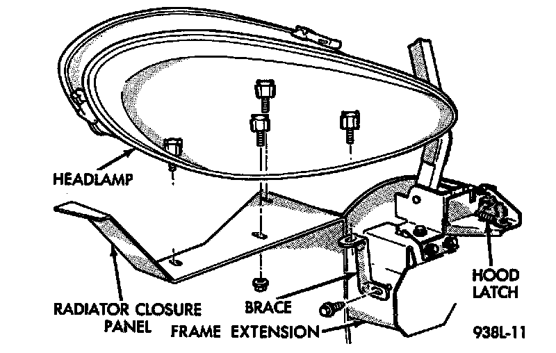 1. Remove front bumper fascia as necessary to gain access to bottom of headlamp.