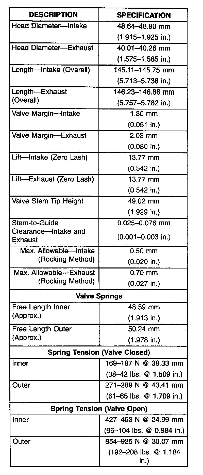 Torque Specifications