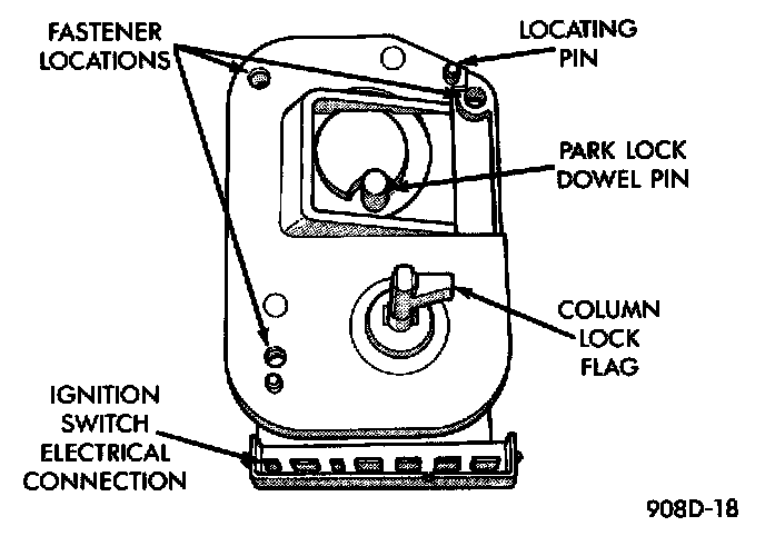 2. The park lock dowel pin and column lock flag must also be properly indexed before installing switch.