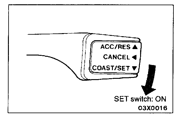 NOTE: If the vehicles speed decreases to approximately 15 km/h (9 mph) below the set speed because of climbing a hill for example, the auto-cruise control will be canceled.