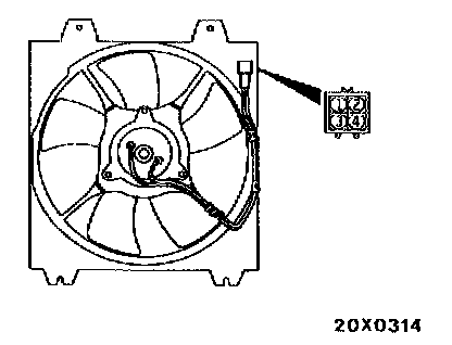 1. Check that the condenser fan motor operates when battery voltage (+) is applied to terminal 1 and terminal 4 is grounded (-).