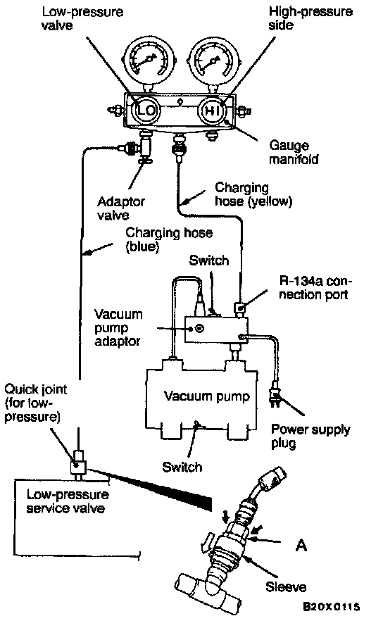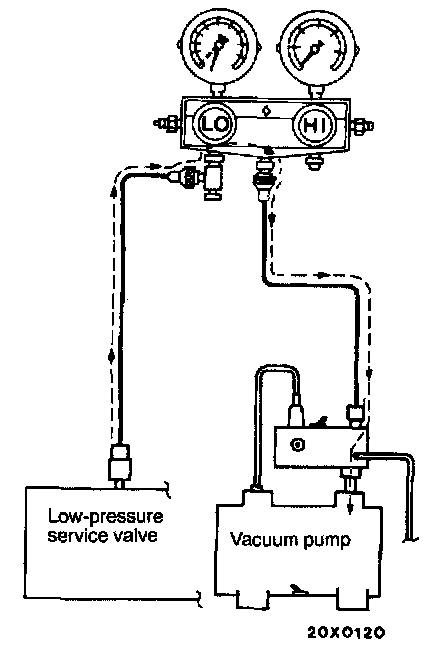 CAUTION: Do not operate the A/C compressor during evacuation.