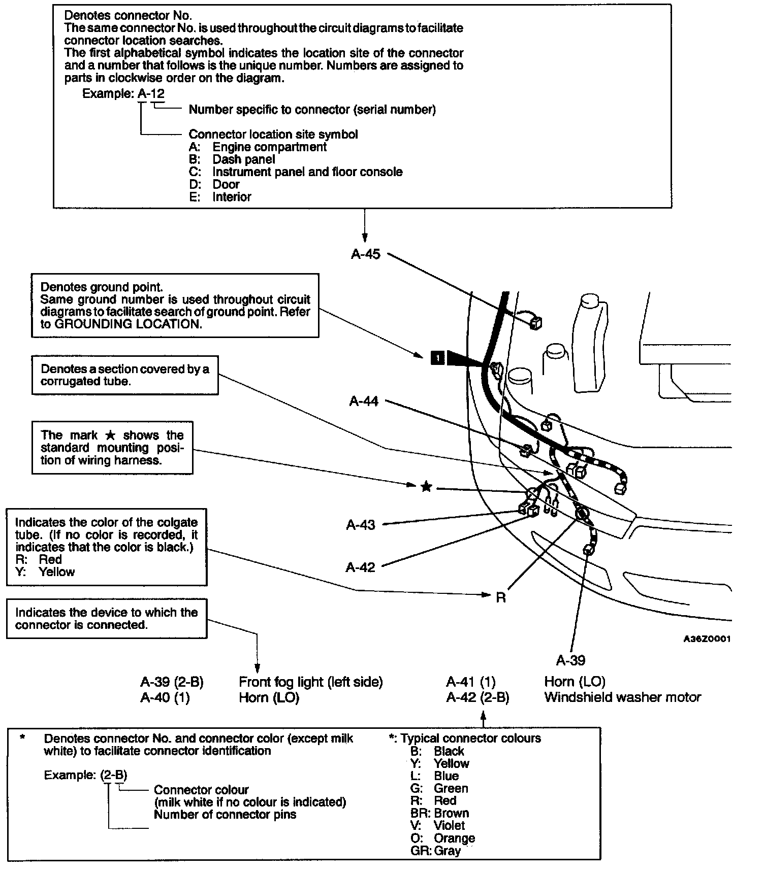 The wiring harness diagram clearly shows the connector locations and harness routings at each site on actual vehicles.