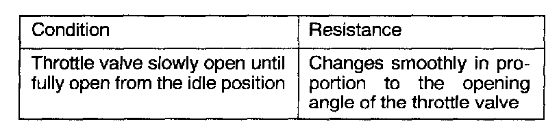 4. If the resistance is outside the standard value, or if it doesn't change smoothly, replace the throttle position sensor.