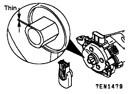 1. Mount the rotor as shown in the illustration by aligning the rotor terminal portion and the thin portion of blank "C" spline cut section.