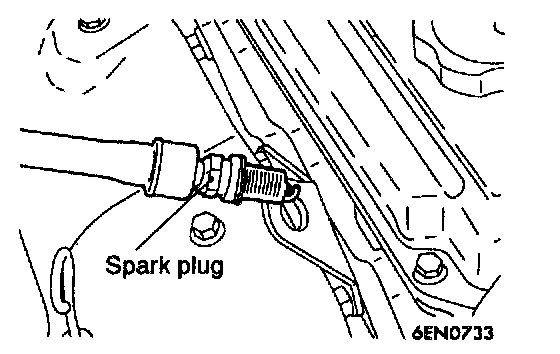 2. Ground the spark plug outer electrode (body), and crank the engine. Check for spark across the electrodes.