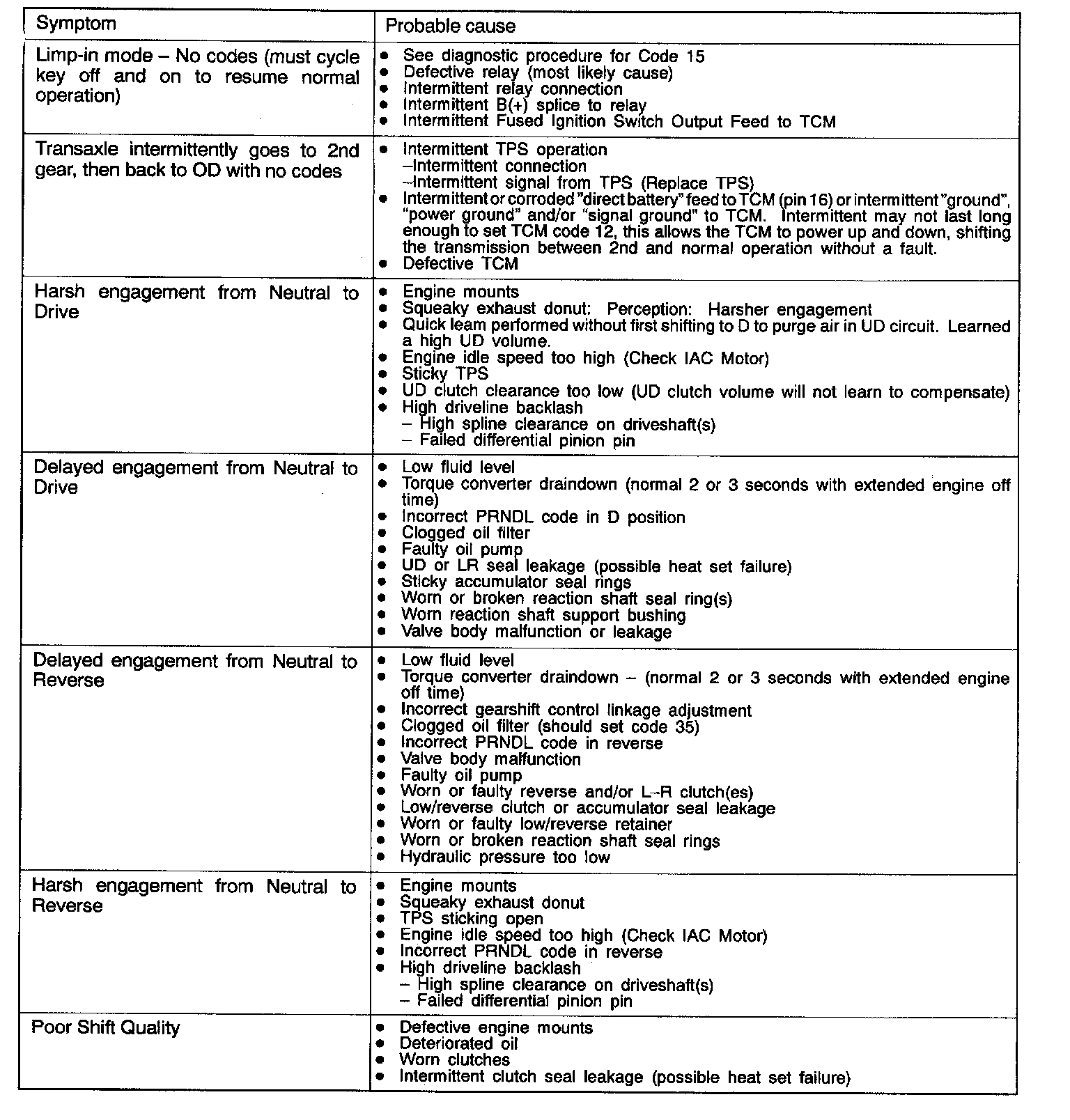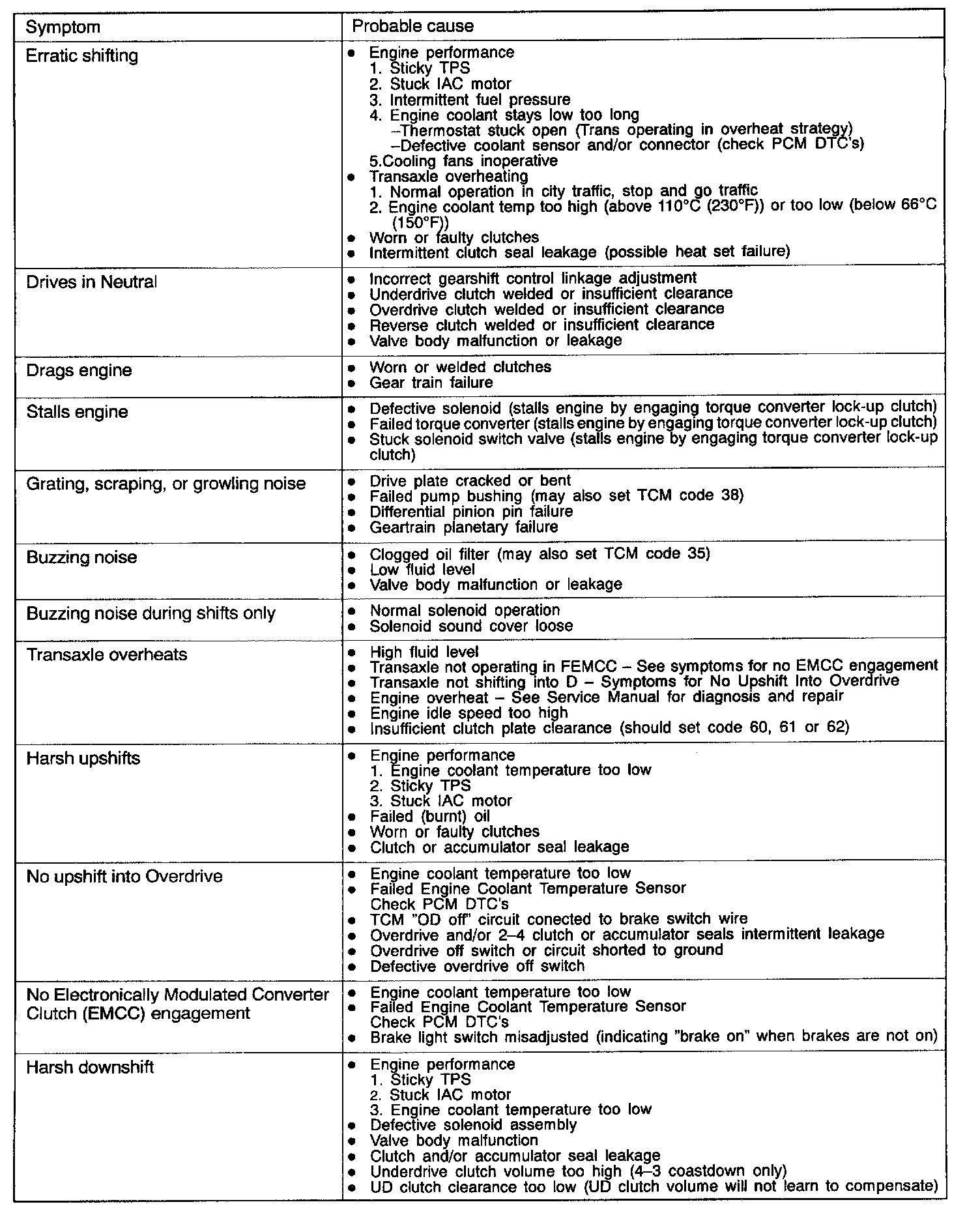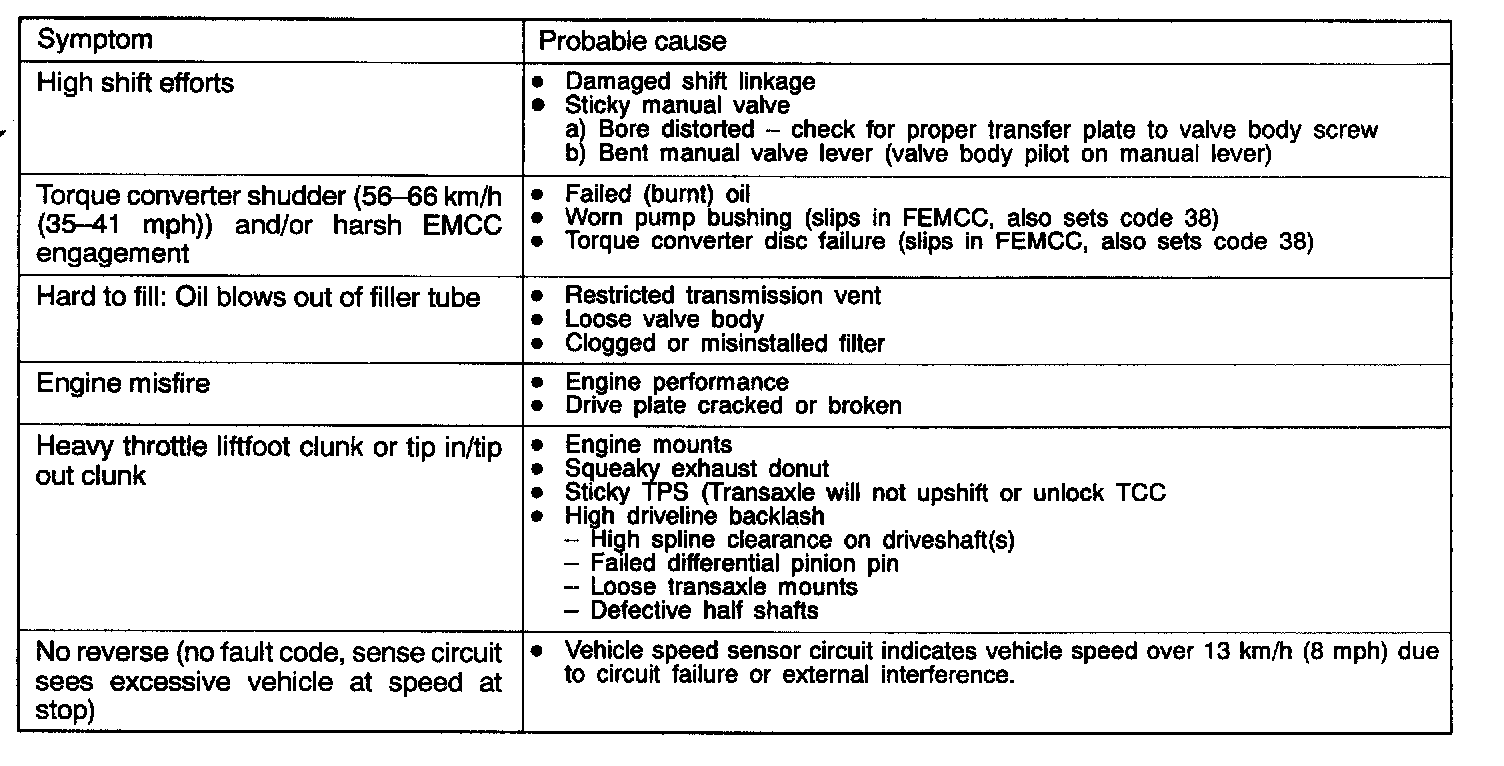 INSPECTION MATRIX FOR TROUBLE SYMPTOMS