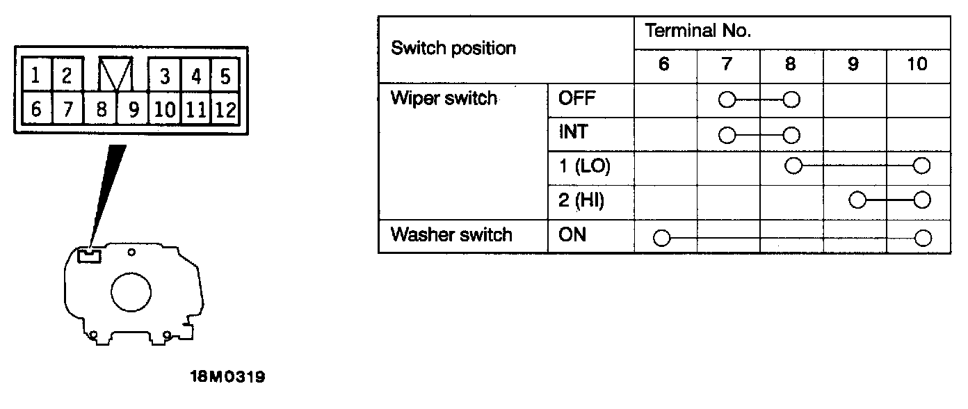 Column Switch Continuity Check (Wiper and Washer Switch):